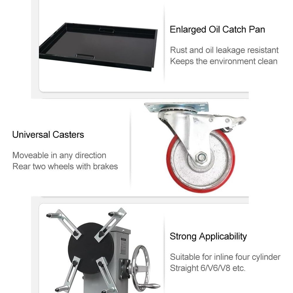 Easy maneuverability: Equipped with wheels and a four-wheel base, this engine stand can be easily moved around your workspace for additional For convenience.