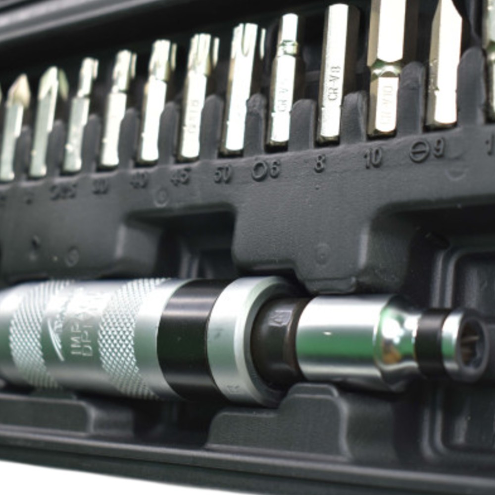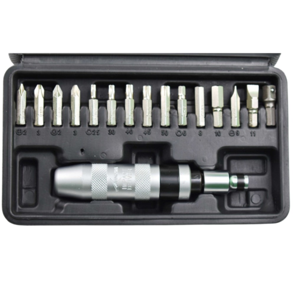ბიტები 5/16″ (14 ცალი, სიგრძე 36 მმ): ბიტის ადაპტერი: ბიტის დამჭერი: დარტყმით-მბრუნავი სახრახნისი: |