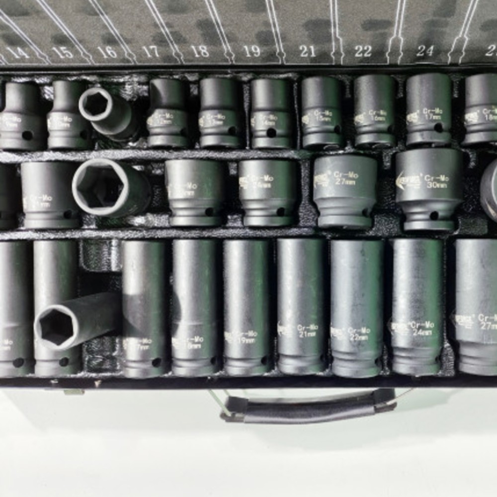 | დიდი 1/2" დარტყმითი თავაკების ნაკრები მოიცავს 20 მოკლე და 15 გრძელ თავაკებს. თავაკების ზომების ეს ფართო არჩევანი საშუალებას გაძლევთ გაუმკლავდეთ პრაქტიკულად ნებისმიერ დავალებას. ეს სპეციალიზებული დარტყმითი თავაკებები, რომლებიც შექმნილია პნევმატური ხელსაწყოებისთვის და მუშაობენ ექსტრემალურ პირობებში, დიდხანს ინარჩუნებენ ნომინალურ ზომას და არ იბზარებიან დარტყმითი დატვირთვის ქვეშ. ისინი განსაკუთრებით რეკომენდებულია პროფესიონალური საბურავების და ავტოსარემონტო სახელოსნოებისთვის. |